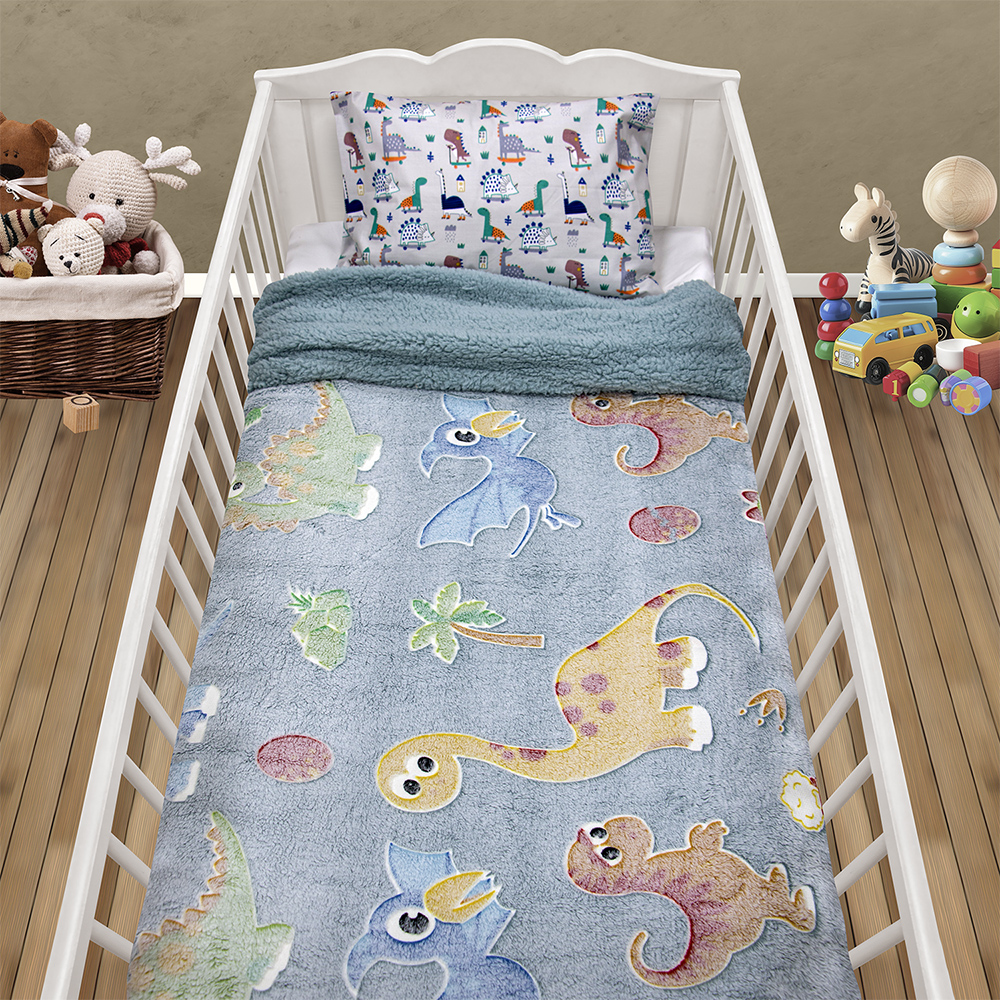 Ανακαλύψτε την απόλυτη προσθήκη στο βρεφικό δωμάτιο με την κουβέρτα Volcano που διαθέτει ένα μοναδικό φωσφοριζέ σχέδιο δεινοσαύρων. Κατασκευασμένη από υλικά υψηλής ποιότητας, απαλά και ζεστά, η κουβέρτα Volcano προσφέρει άνεση και χαρά στον μικρό σας εξερευνητή κατά τη διάρκεια του ύπνου. Οι φωσφοριζέ δεινόσαυροι ζωντανεύουν στο σκοτάδι, δημιουργώντας μια μαγευτική ατμόσφαιρα που θα κάνει τον ύπνο ακόμα πιο διασκεδαστικό. Η κουβέρτα εσωτερικά διαθέτει απαλή sherpa.