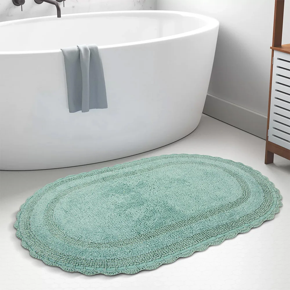 Πατάκι Libata από τη νέα Bath συλλογή της εταιρείας Lino Home! Το πατάκι Libata είναι μονόχρωμο οβάλ, χαρακτηριστικό που το καθιστά μια εκλεπτυσμένη προσθήκη στο μπάνιο. Είναι μονόχρωμο, αποπνέοντας μια μίνιμαλ αισθητική διακοσμώντας όμορφα και διακριτικά. Περιμετρικά διαθέτει σχέδιο δαντελίτσας που του χαρίζει μια vintage  Η κυρίως βαμβακερή του σύνθεση του δίνει μια ιδιαίτερα απαλή υφή, ενώ προστατεύει το δάπεδο του μπάνιου καθώς το κρατάει στεγνό και ασφαλές. Αφήστε το πατάκι Libata να προσθέσει μια νότα χαλάρωσης και πολυτέλειας στην κάθε στιγμή που απολαμβάνετε το μπάνιο σας!