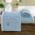 Ανανεώστε το μπάνιο σας με τις πετσέτες της σειράς Marley. Διαθέσιμες σε επτά μοναδικές αποχρώσεις και τρεις διαστάσεις, χεριών, προσώπου και σώματος, σας επιτρέπει να δημιουργήσετε τα δικά σας σετ με οποιονδήποτε συνδυασμό μεγεθών και χρωμάτων θέλετε! Η πετσέτα Marley είναι μονόχρωμη ενώ το ρέλι, δεξιά και αριστερά είναι διακοσμημένο με έθνικ σχέδιο κεντητών ρόμβων, που προσδίδει μοναδικό χαρακτήρα.