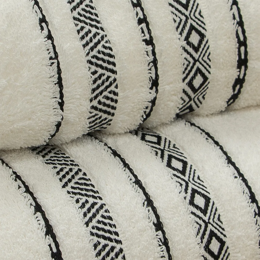 Πετσέτα Lux της εταιρείας Lino Home! H πετσέτα Lux είναι κατασκευασμένη από υψηλής ποιότητας βαμβάκι πενιέ, βάρους 550gsm/m2, ιδανική για καθημερινή χρήση. Η πετσέτα Lux διαθέτει μαλακή και απορροφητική ιδιότητα, προσφέροντας εξαιρετική αίσθηση στο δέρμα. Επίσης, η πετσέτα Lux διακρίνεται για το μοντέρνο διακοσμητικό της σχέδιο σε γεωμετρικό μοτίβο και μαύρο χρώμα το οποίο χαρίζει ένα elegant στυλ.
