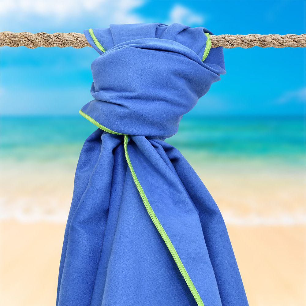 Πετσέτα θαλάσσης της σειράς Kelen από την εταιρεία Lino Home. Η πετσέτα είναι μονόχρωμη σε καλοκαιρινό μπλε χρώμα και διαθέτει επίσης μονόχρωμο ζωηρό πράσινο ρέλι περιμετρικά. Επιπλέον, η πετσέτα στο άκρο της έχει λάστιχο για εύκολο τύλιγμα και αποθήκευση. Είναι κατασκευασμένη από ύφασμα microfiber προκειμένου να μπορεί να είναι απορροφητική αλλά να στεγνώνει και πάρα πολύ γρήγορα μετά από κάθε χρήση. Το μέγεθός της, 80Χ160, την καθιστά ιδιαίτερα εύχρηστη καθώς καλύπτει ικανοποιητικά, διατηρώντας καθαρή τη θέση μας στην παραλία.