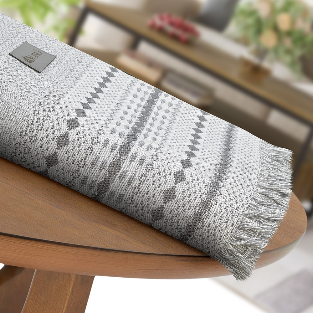 Υποδεχόμαστε το ριχτάρι Bohho από την καλοκαιρινή συλλογή της εταιρείας Lino Home! Το ριχτάρι είναι διακοσμημένο στο μεγαλύτερο μέρος του με ρίγες σε αποχρώσεις απόλυτα εναρμονισμένες με το βασικό χρώμα του ριχταριού. Η φάσα του ριχταριού είναι διακοσμημένη με γεωμετρικά μοτίβο στις αποχρώσεις του ριχταριού. Την Bohho διάθεση του ριχταριού έρχεται να ολοκληρώσει το τελιώμα με κρόσια που διαθέτει, με νήματα από το ίδιο το ριχτάρι.