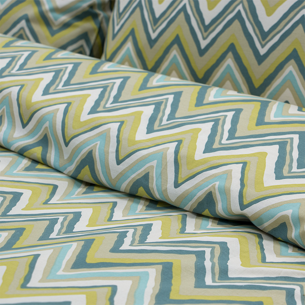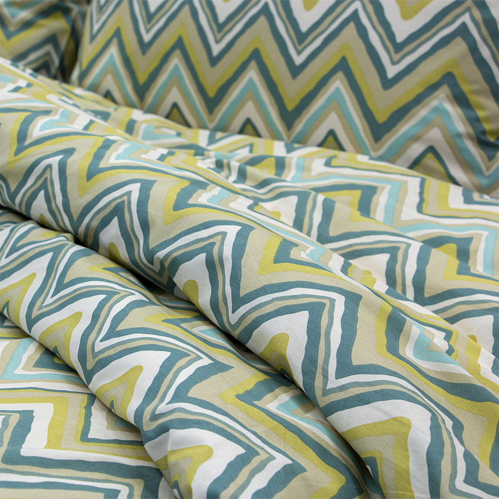 Ανανεώστε την κρεβατοκάμαρά σας με την παπλωματοθήκη Flots. Το σετ είναι κατασκευασμένο από βαμβακερό ύφασμα 150 κλωστών, προσφέροντας απαλότητα και ανθεκτικότητα. Διαθέτει γεωμετρικό zig-zag μοτίβο, συνδυάζοντας την ποιότητα με τη μοντέρνα αισθητική για έναν ξεκούραστο ύπνο. Το σετ περιλαμβάνει 1 παπλωματοθήκη και 2 μαξιλαροθήκες. Προτείνεται πλύσιμο έως τους 40oC και σιδέρωμα σε μέτριες θερμοκρασίες. Ανενδείκνυται η χρήση χλωρίου ή/και λευκαντικού.