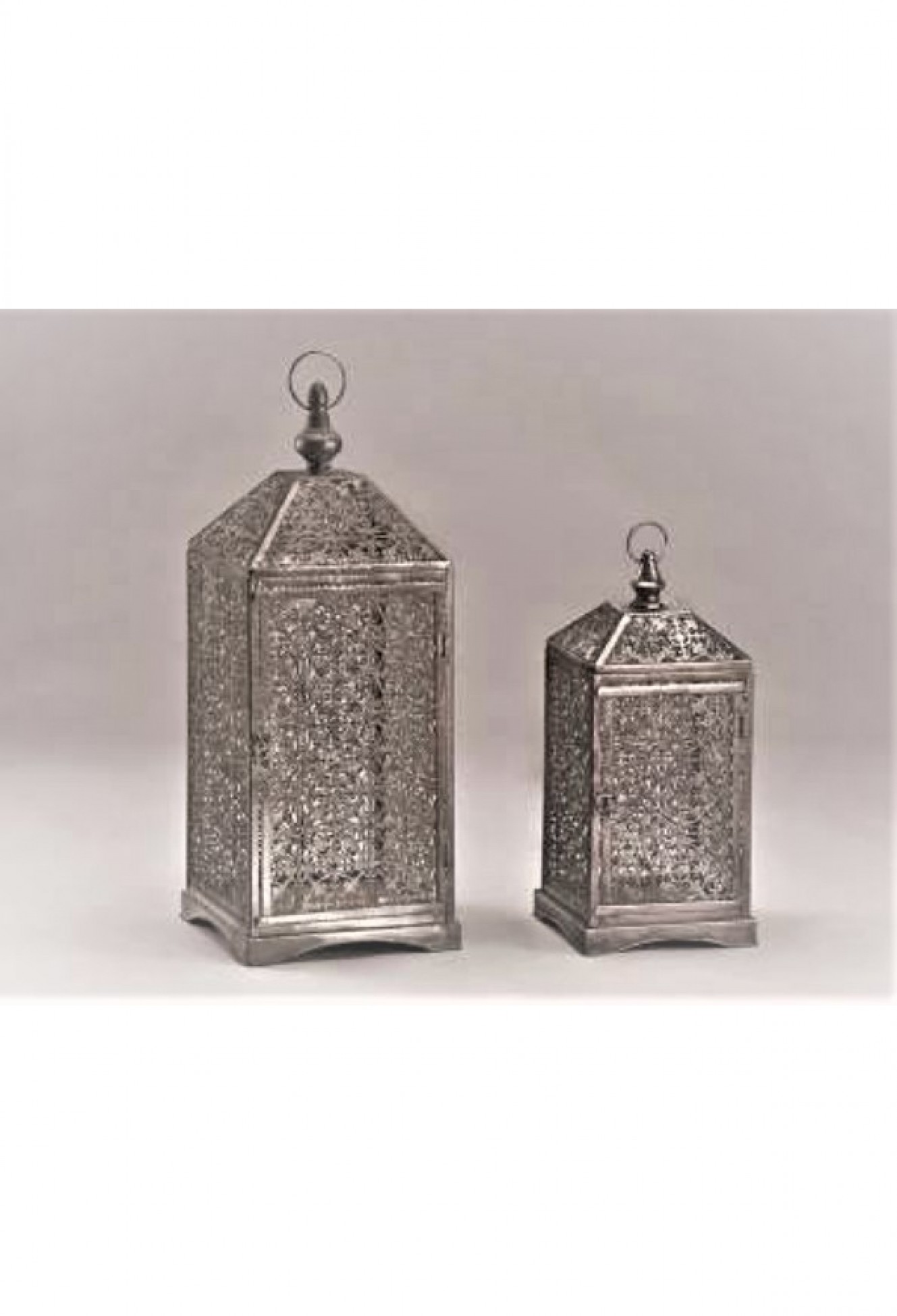 Μεταλλικά Διακοσμητικά Φανάρια Ασημί Vintage (Σετ 2τμχ.)