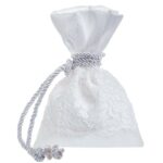 Πουγκί σαντούκ λευκό με λαιμό,ντυμένο με λευκή δαντέλα. Διαφορετικές διαστάσεις κατόπιν συνεννόησης
