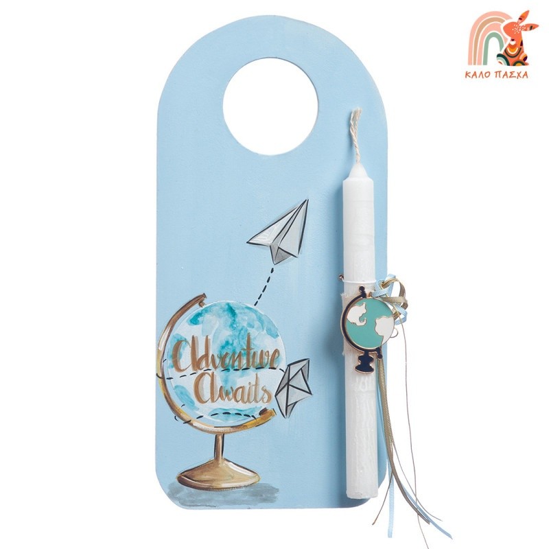 Πασχαλινή λαμπάδα με θέμα αυτοκινητάκι .Η λαμπάδα είναι ζωγραφισμένη με χρωματιστά μπαλόνια και στολισμένη με ξύλινο ζωγραφιστό κόκκινο αυτοκίνητο .Το δώρο ολοκληρώνει η ξύλινη print travel ετικέτα.