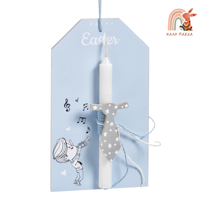 Πασχαλινή λαμπάδα με θέμα αγοράκι. Το πασχαλινό δωράκι περιλαμβάνει:
