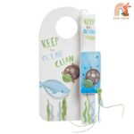 Πασχαλινή λαμπάδα με θέμα Keep the ocean clean. Η λαμπάδα είναι στολισμένη με ζωγραφιστή ετικέτα με χελωνίτσα και διακοσμητικό πόρτας ζωγραφιστό με τον βυθό της θάλασσας και το μότο “Keep the ocean clean”.