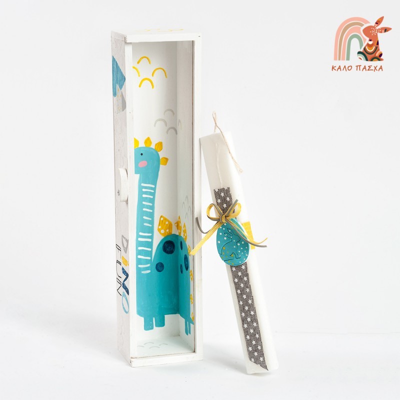 Πασχαλινή λαμπάδα με θέμα το δεινοσαυράκι. Το πασχαλινό δωράκι περιλαμβάνει: