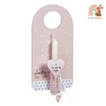 2) τη λαμπάδα διακοσμημένη με ροζ γύψινη καρδιά και τη φράση you are my angel και rayon ροζ κορδόνι.