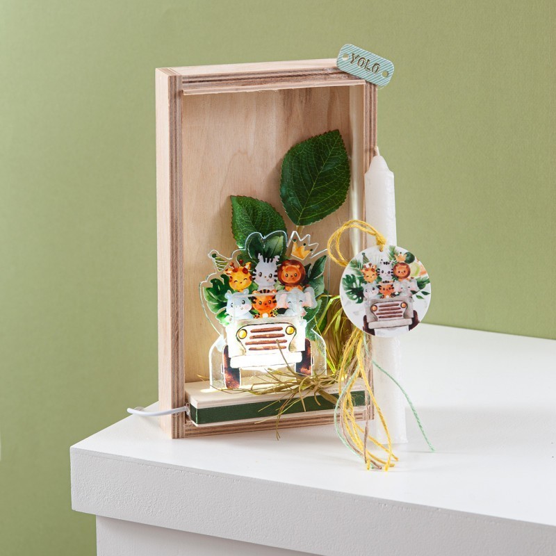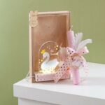 Πασχαλινή λαμπάδα σε καδράκι με led φωτισμό και θέμα τον κύκνο. Το καδράκι είναι διακοσμημένο με plexiglass παράσταση που απεικονίζει τον κύκνος και ροζ λαμπάδα με τα αντίστοιχο plexiglass μπρελοκ.