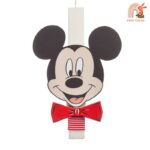 Πασχαλινή λαμπάδα με θέμα τον Mickey. H λαμπάδα περιλαμβάνει το πρόσωπο του Mickey με ξύλινο παπιγιόν σε κόκκινο χρώμα.
