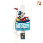 Πασχαλινή λαμπάδα με θέμα τον Mickey. Η λαμπάδα περιλαμβάνει ξύλινη παράσταση print Mickey Fun Day σε τιρκουάζ-κόκκινες αποχρώσεις.