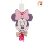 Πασχαλινή λαμπάδα με θέμα την Minnie. Η λαμπάδα είναι διακοσμημένη με φιόγκο πουά και ξύλινη φιγούρα με το πρόσωπο της Minnie .