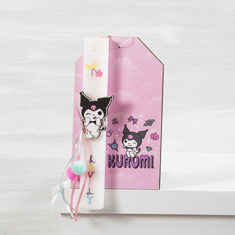 Πασχαλινή λαμπάδα με θέμα την Peppa. Η λαμπάδα είναι ζωγραφισμένη και στολισμένη με διάφορα στοιχεία της σειράς Peppa .Συνοδεύεται από ξύλινη ετικέτα με το αντίστοιχο θέμα.