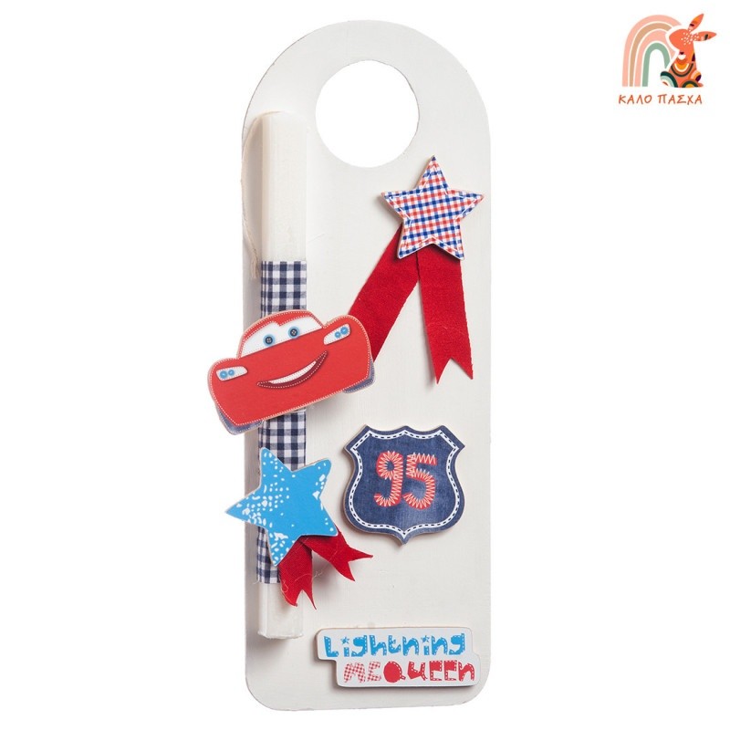 Πασχαλινή λαμπάδα με θέμα την Tinkerbell.Η λαμπάδα είναι διακοσμημένη με δαντέλα, λουλούδια και ξύλινη παράσταση με την Tinkerbell.