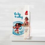 Πασχαλινή λαμπάδα με θέμα την Βαϊάνα .Η λαμπάδα είναι ζωγραφισμένη με το γουρουνάκι Pua και τον κόκκορα Hei hei και στολισμένη με την ξύλινη φιγούρα της Βαϊάνα .Συνοδεύεται από ξύλινη ετικέτα με το αντίστοιχο θέμα. .