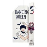 Πασχαλινή λαμπάδα με θέμα Wednesday The Dancing Queen. Η λαμπάδα είναι ζωγραφισμένη με διάφορα στοιχεία από την σειρά Wednesday και διακοσμημένη με μεταλλικό μοτίφ παλάμη.H λαμπάδα συνοδεύεται από ξύλινη ετικέτα με το αντίστοιχο θέμα.