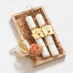 Πασχαλινό καδράκι για ζευγάρια “You& Μe”. Το δωράκι περιλαμβάνει : α)δύο λαμπάδες στολισμένες με plexi χρυσό διακοσμητικό σε σχήμα puzzle β) μπουκέτο από αποξηραμένα λουλούδια σε εκρού και ροζ αποχρώσεις.