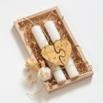 Πασχαλινό καδράκι για ζευγάρια “Soulmate”. Το δωράκι περιλαμβάνει : α)δύο λαμπάδες στολισμένες με plexi χρυσή καρδία puzzle β) μπουκέτο από αποξηραμένα λουλούδια σε εκρού αποχρώσεις.
