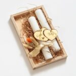 Πασχαλινό καδράκι για ζευγάρια “Love you”. Το δωράκι περιλαμβάνει : α)δύο λαμπάδες στολισμένες με plexi χρυσή καρδία puzzle β) μπουκέτο από αποξηραμένα λουλούδια σε τερακότα αποχρώσεις.