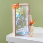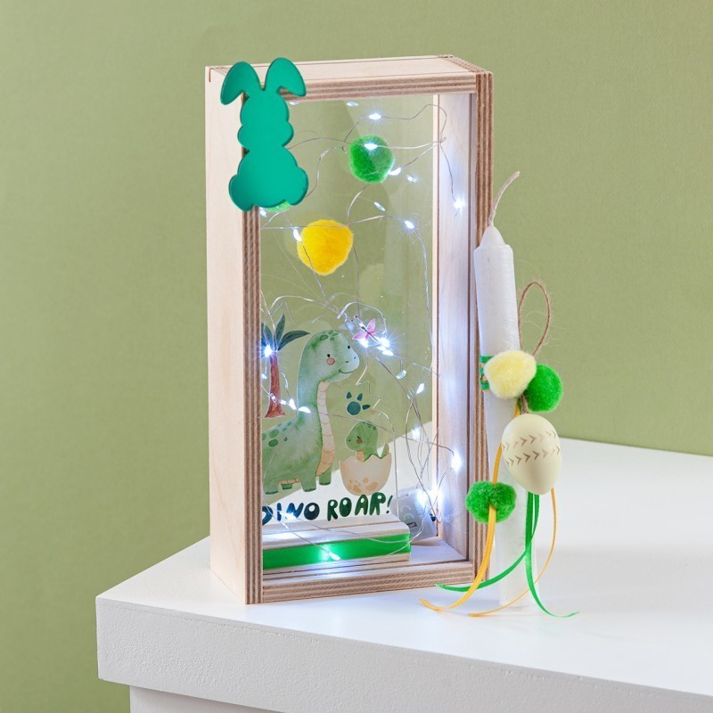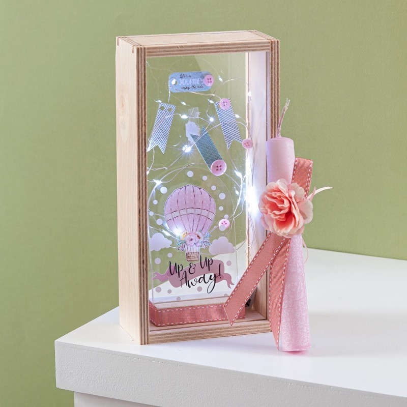 Πασχαλινό σετ δώρου σε ξύλινο natural κουτί με φωτάκια led.Το δωράκι έχει θέμα το ουράνιο τόξο print σε διάφανο plexiglass .Συνοδεύεται από στολισμένη λαμπάδα με αντίστοιχα στοιχεία.