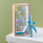 Πασχαλινό σετ δώρου σε ξύλινο natural κουτί με φωτάκια led.Το δωράκι έχει θέμα το σιέλ καρουζελ print σε διάφανο plexiglass .Συνοδεύεται από στολισμένη λαμπάδα με αντίστοιχα στοιχεία.