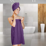 Το ύφασμα από 100% combed cotton προσφέρει απαλή αίσθηση και απορροφητικότητα, ενώ το λάστιχο στην πλάτη εξασφαλίζει ότι η πετσέτα θα παραμείνει σταθερή και θα προσφέρει άνεση κατά τη χρήση. Τα κουμπιά προσθέτουν ένα στοιχείο πρακτικότητας, επιτρέποντας να τυλιχθείτε γρήγορα και εύκολα στην πετσέτα και να τη διατηρήσετε στη θέση της.