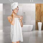 Το ύφασμα από 100% combed cotton προσφέρει απαλή αίσθηση και απορροφητικότητα, ενώ το λάστιχο στην πλάτη εξασφαλίζει ότι η πετσέτα θα παραμείνει σταθερή και θα προσφέρει άνεση κατά τη χρήση. Τα κουμπιά προσθέτουν ένα στοιχείο πρακτικότητας, επιτρέποντας να τυλιχθείτε γρήγορα και εύκολα στην πετσέτα και να τη διατηρήσετε στη θέση της.