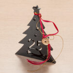 Plexiglass διακοσμητικό Χριστουγεννιάτικο δέντρο σε μαύρο χρώμα. Στο εσωτερικό είναι χαραγμένα αστεράκια και το 2026.Το επιτραπέζιο δέντρο είναι στολισμένο με μεταλλική δεκάρα, κορδόνια και βελούδινη κορδέλα σε κόκκινη απόχρωση.