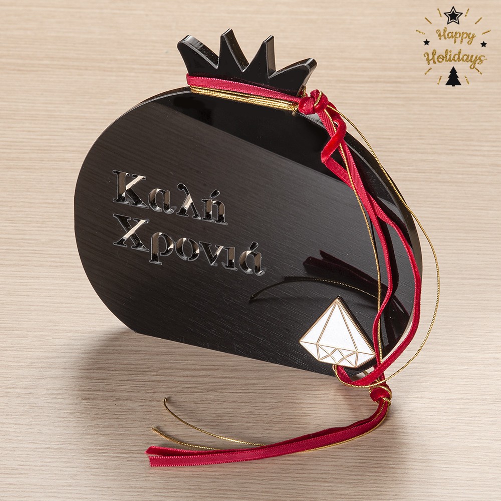 Plexiglass διακοσμητικό καράβι σε μαύρο χρώμα. Στο εσωτερικό είναι χαραγμένο το “26”.Το επιτραπέζιο καράβι είναι διακοσμημένο με μεταλλική δεκάρα, χρυσά κορδόνια και βελούδινη κορδέλα σε κόκκινη απόχρωση .
