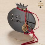 Plexiglass διακοσμητικό στρογγυλό ρόδι σε μαύρο χρώμα. Στο επιτραπέζιο ρόδι είναι χαραγμένη η ευχή “Καλή Χρονιά” και είναι στολισμένο με μεταλλικό φύλλο, χρυσά κορδόνια και βελούδινη κορδέλα σε κόκκινη απόχρωση.
