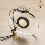 Plexiglass διακοσμητικό οβάλ ρόδι σε διάφανο χρώμα. Το επιτραπέζιο ρόδι είναι διακοσμημένο με στρογγυλό ματάκι από plexiglass χρυσό καθρέπτη και στολισμένο με μεταλλικό φύλλο, χρυσά κορδόνια και βελούδινη κορδέλα σε μαύρη απόχρωση.