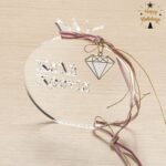 Plexiglass διακοσμητικό στρογγυλό ρόδι σε διάφανο χρώμα. Στο επιτραπέζιο ρόδι είναι χαραγμένη η ευχή “Καλή Χρονιά” και είναι στολισμένο με μεταλλικό μοτίφ διαμαντάκι, χρυσά κορδόνια και βελούδινη κορδέλα σε σάπιο μήλο.