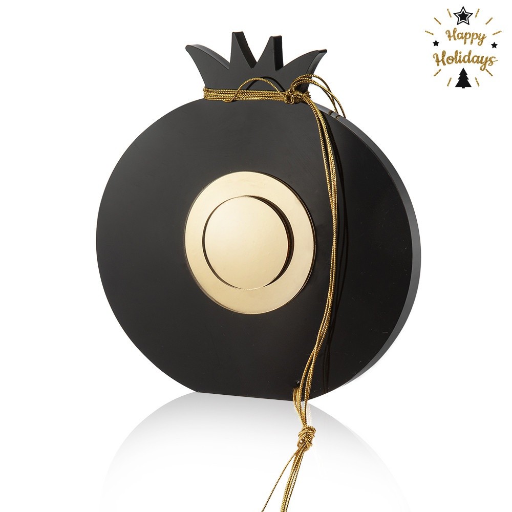 Plexiglass διακοσμητικό στρογγυλό ρόδι σε μαύρο χρώμα. Το επιτραπέζιο ρόδι είναι διακοσμημένο με στρογγυλό ματάκι από plexiglass χρυσό καθρέπτη και στολισμένο με χρυσά κορδόνια.