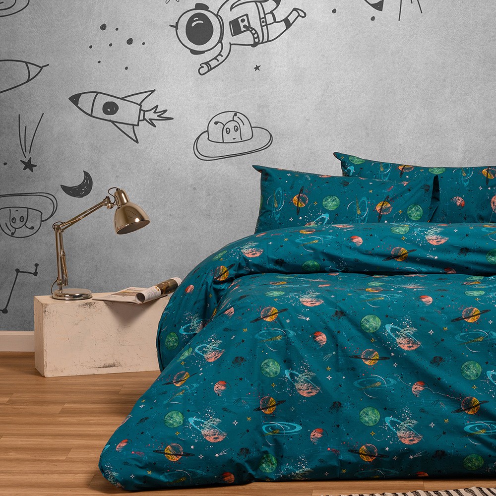 Σετ 2 τεμ. Σεντόνι Μονό Με Λάστιχο + Μαξιλαροθήκη (100×200+32) Melinen Wang Petrol