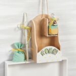 Ξύλινο ράφι λαδικών σε natural-βεραμάν χρώμα και ζωγραφισμένο με τη λέξη “ROAR”. Ο κωδικός περιλαμβάνει στολισμένα 3 κεράκια, σαπούνι μέσα σε πουγκί και μπουκαλάκι λαδιού.
