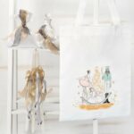 Ζωγραφιστή υφασμάτινη τσάντα με 3 κεριά, σαπούνι και μπουκάλι λαδιού στολισμένα με ασημί κορδόνι και χρυσές κορδέλες. Η τσάντα είναι ζωγραφιστή στο μπροστινό κομμάτι με θέμα καρυοθραύστη.