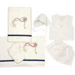 4) one size σετ εσωρούχων (φανελάκι, μποξεράκι και καπελάκι).