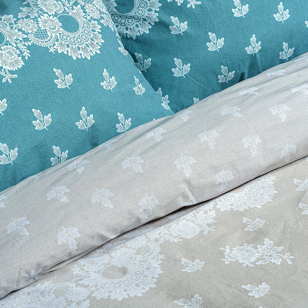Σετ πάπλωμα υπέρδιπλο Palm Art 12186 220×240 Πετρόλ Μπεζ Beauty Home