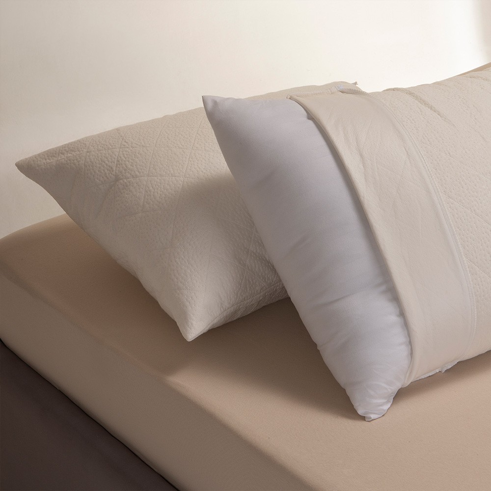 Αδιάβροχες προστατευτικές μαξιλαροθήκες με πολύ μαλακή αίσθηση από Jacquard ύφασμα σύνθεσης 34% Bamboo-66% Polyester. Η αδιάβροχη μεμβράνη πολυουρεθάνης PU που διαθέτουν εσωτερικά προστατεύει τα μαξιλάρια σας από λεκέδες. Το ύφασμα από Bamboo απομακρύνει την υγρασία, είναι αντιμικροβιακό και αντιαλλεργικό και σας εξασφαλίζει άνετο και δροσερό ύπνο. Αποτελεί εξαιρετική επιλογή, ικανή να ικανοποιήσει και τους πιο απαιτητικούς.