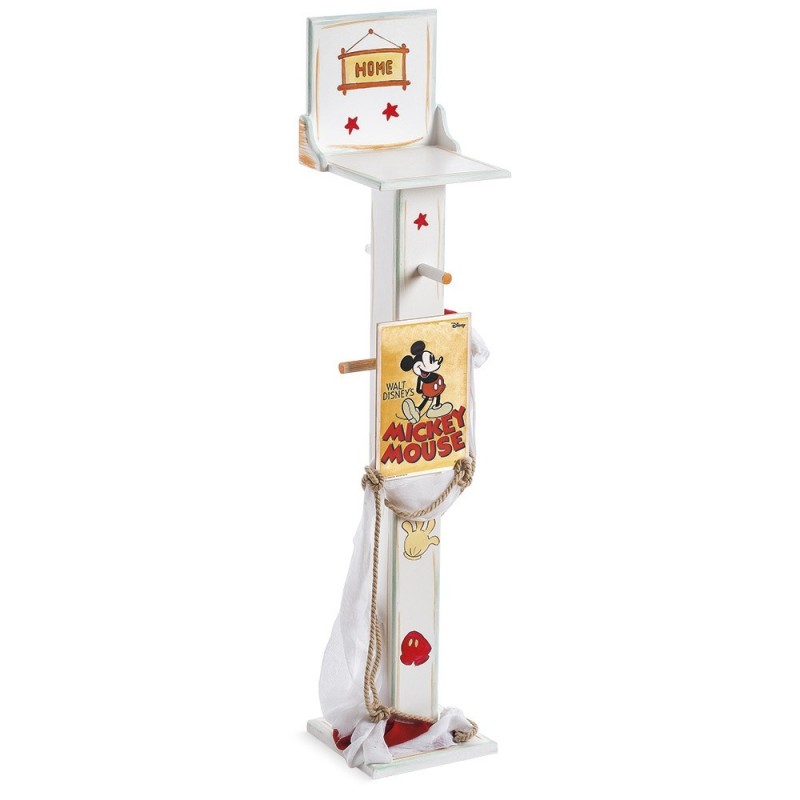 Disney βιβλίο ευχών εξωτερικά από χοντρό χαρτόνι ντυμένο με ριγέ καφέ λινό ύφασμα και διακοσμημένο με ξύλινο καδράκι που απεικονίζει τον κλασσικό κόκκινο mickey τύπου retro