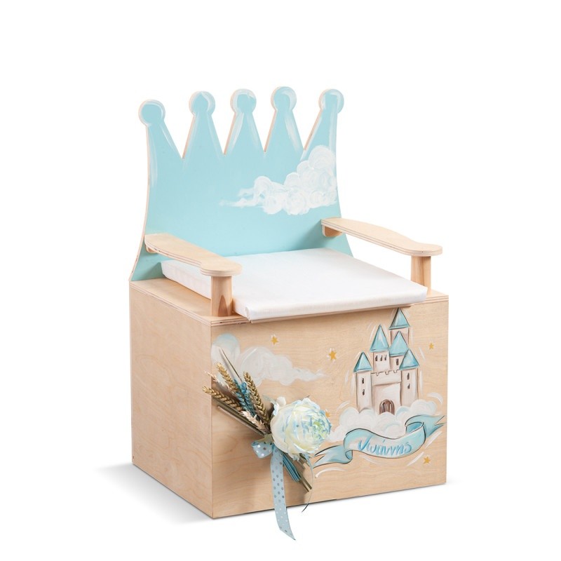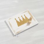 Βιβλίο ευχών με εξώφυλλο από χοντρό χαρτόνι σε λευκό χρώμα και ζωγραφισμένη κορώνα με χρυσό glitter.