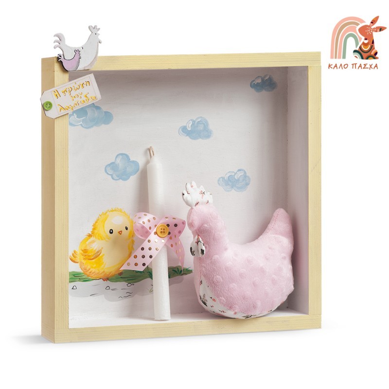 Ξύλινη πασχαλινή κορνίζα σετ δώρου σιέλ κοτούλα