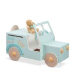 READY-STEADY-GO. Ξύλινο κουτί βαπτιστικών σε σχήμα αυτοκινητάκι-τρενάκι. Το χρώμα του είναι παλ βεραμάν με λεπτομέρεις καφέ-σιέλ. Το σύνθημα “READY-STEADY-GO” δίνει την εκκίνηση για ένα φανταστικό ταξίδι.