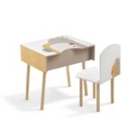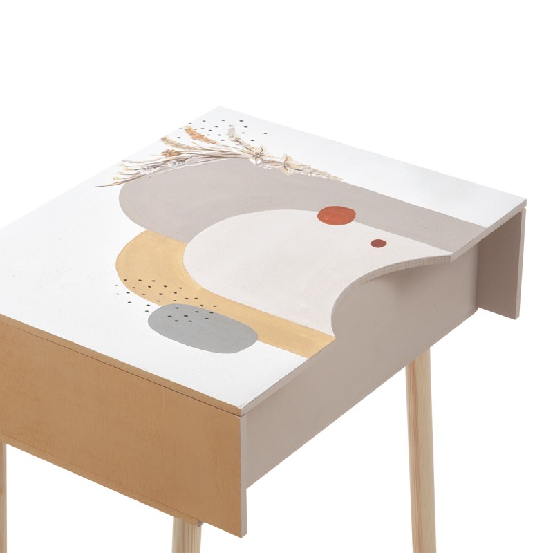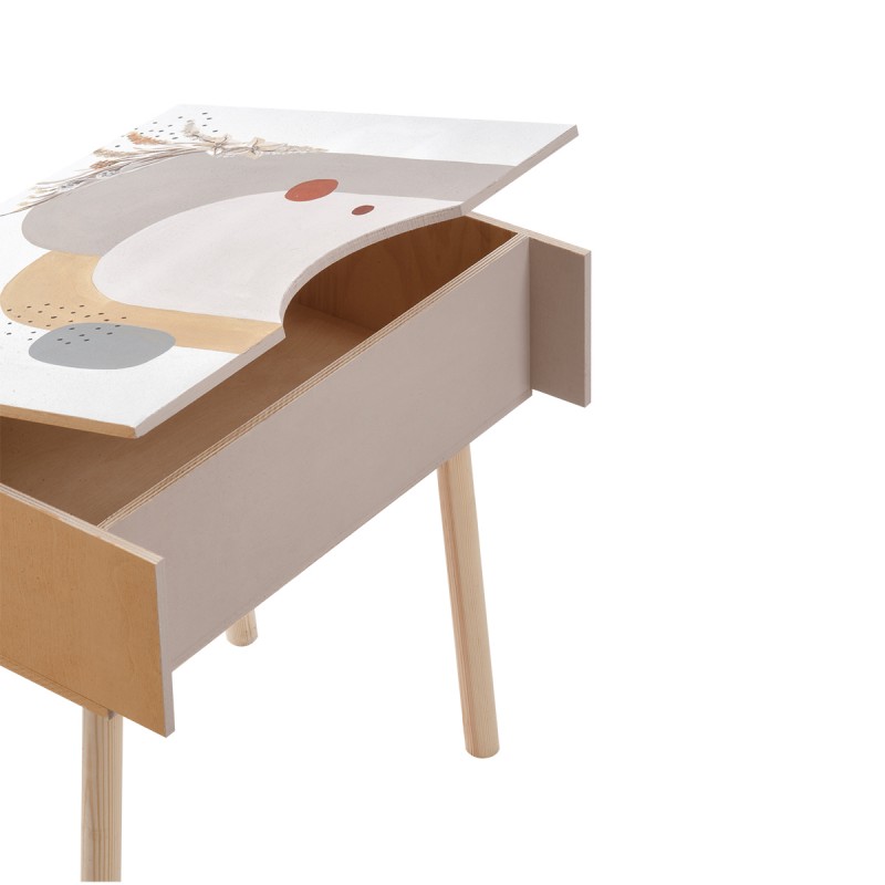 “Μοντέρνα γεωμετρία”. Ξύλινη συσκευασία βάπτισης-γραφείο με καρεκλάκι. Το σετ είναι ζωγραφισμένο σε γηϊνές αποχρώσεις με αφαιρετικά-αφηρημένα σχέδια.