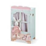 Baby’s Farm. Ξύλινο κουτί βαπτιστικών βιτρίνα. Η βιτρίνα είναι ζωγραφισμένη σε βεραμάν, ροζ και σομόν αποχρώσεις. Στο μπροστά μέρος είναι ζωγραφισμένη μία αγελαδίτσα και το ουράνιο τόξο. Τα παράθυρα είναι διακοσμημένα με λευκό embroidery ύφασμα.