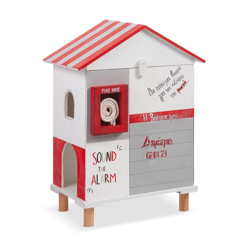 Fire Alarm…Το πυροσβεστικό. Ξύλινο κουτί βαπτιστικών σε σχήμα οχήματος. Το κουτί είναι ζωγραφισμένο σε κόκκινο χρώμα και απεικονίζει ένα πυροσβεστικό.