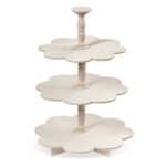 Ξύλινη τουρτίερα σε σχήμα μαργαρίτας με τρία επίπεδα με αντικέ σβησίματα.