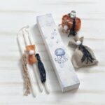 Ξύλινο κουτί συσκευασίας παραλληλόγραμμο, ζωγραφισμένο με μικρή μέδουσα στο βυθό.. Ο κωδικός περιλαμβάνει τα 3 κεράκια, το σαπούνι μέσα σε πουγκάκι και το μπουκάλι του λαδιού.